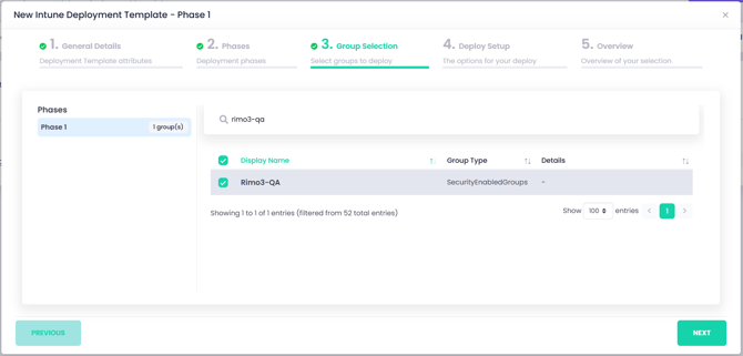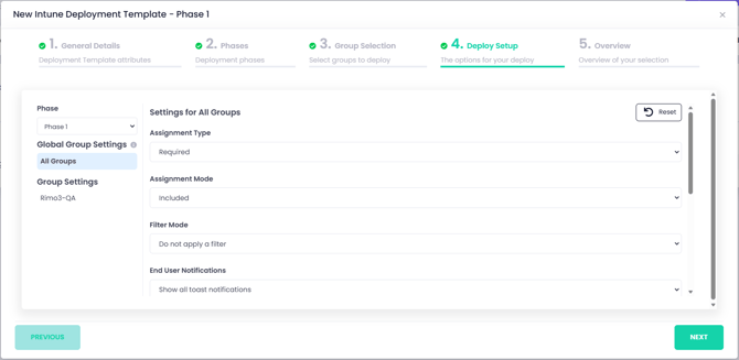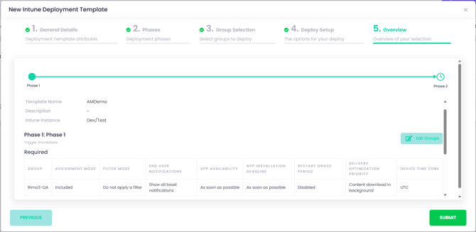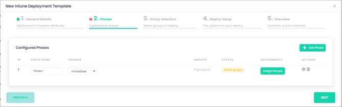 You will not be able to create an Intune deployment template if if one or more phases do not have a group assigned.