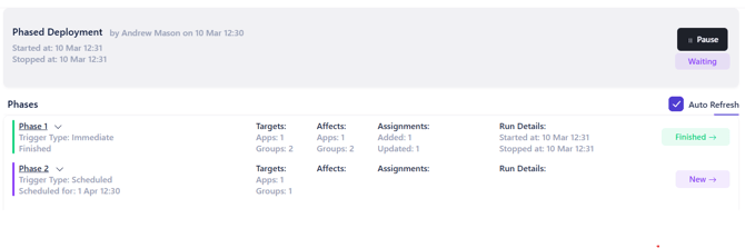 - On the Phased Deployment screen you will again see a summary of the configured phases and the status of each.